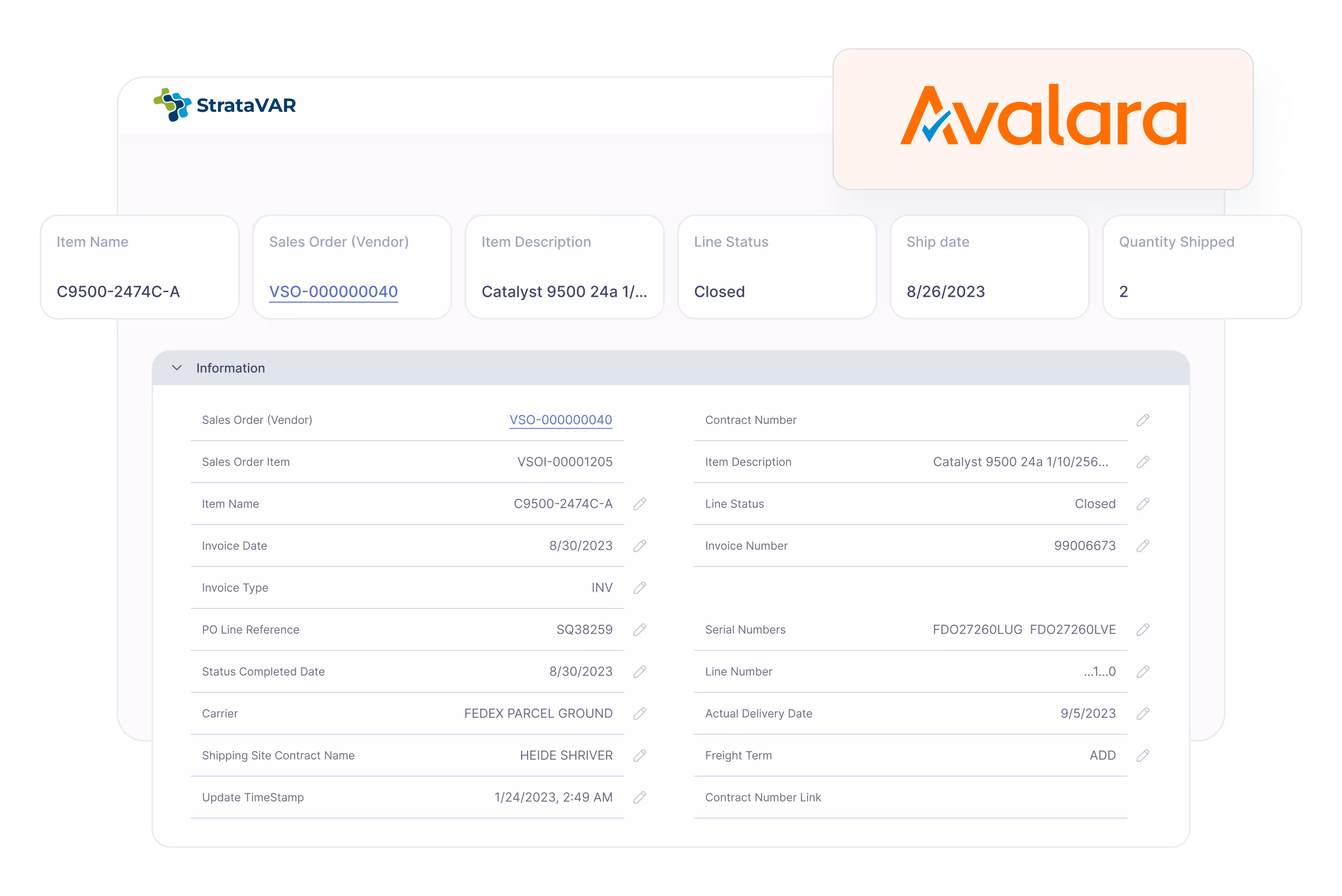 For VARs and MSPs quoting across multiple distributors and product types, the StrataVAR + Avalara integration delivers live, line-level tax accuracy without leaving the quoting workspace.